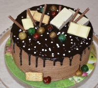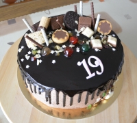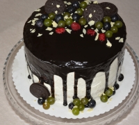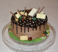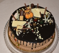 Nepoťahovaná biela a tmavá čokoláda, na boku zdobenie ( tkz. ťapkaná :-) )